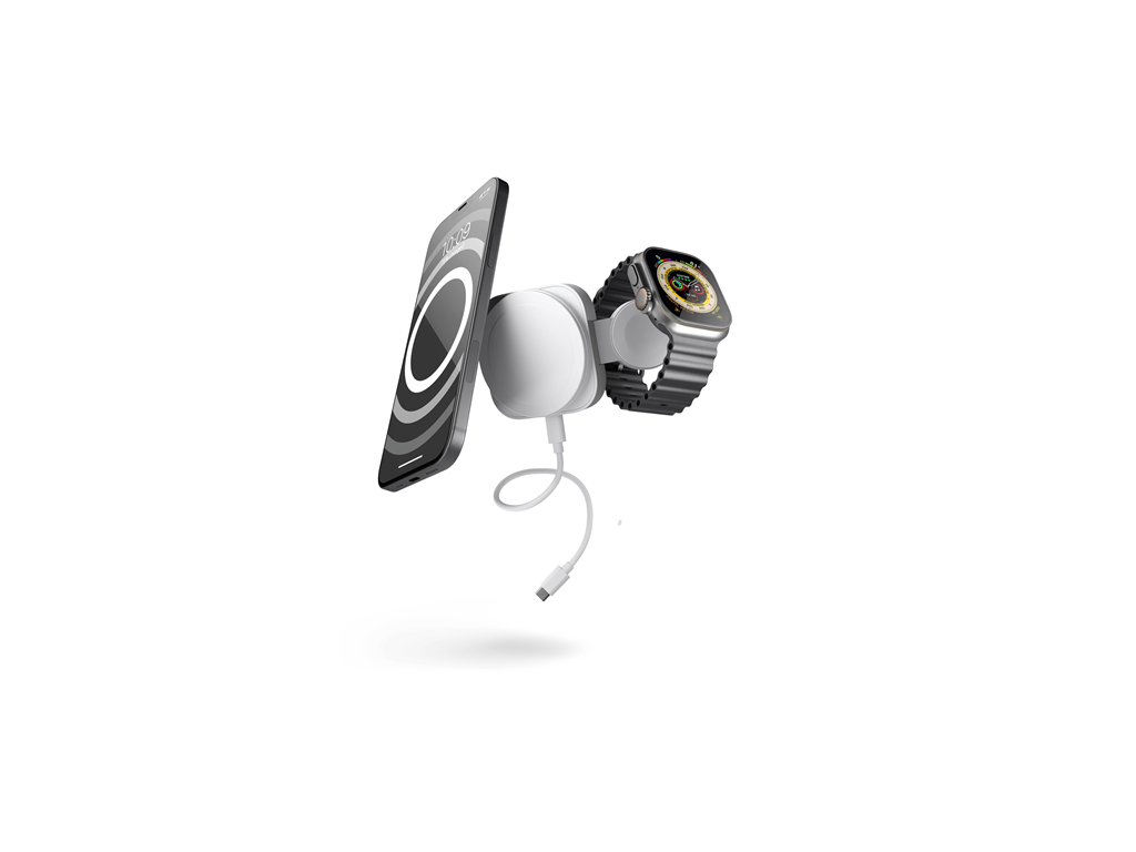 Cestovná nabíjačka 2 v 1 MagSafe + Watch je plne kompatibilná s každým Apple Watch, vrátane Apple Watch Ultra. Pri otvorení stojana sa iPhone 12, 13 alebo 14 nabije a bude otočený k používateľovi v horizontálnej polohe. Súčasťou je aj cestovné puzdro, ktoré bezpečne uloží cestovnú nabíjačku MagSafe + Watch 2 v 1, ako aj nabíjací kábel USB-C na USB-C. Táto jedinečná nabíjačka 2 v 1 vrátane cestovného puzdra zabezpečí, že sa žiadny kábel a nabíjačky nezamotajú do tašky alebo kufra. Pokoj v duši so silou na dlani.