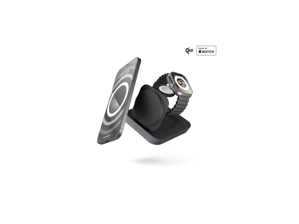 S nabíjačkou Zens Nightstand Charger Pro 2 minimalizujete chaotické káble vo vašej spálni. Táto spoľahlivá a pohodlná nabíjačka vám umožňuje bezdrôtovo nabíjať dve zariadenia súčasne, Apple Watch a váš iPhone od rady 12 a vyšší, napíjanie iPhone v horizontálnom režime, pričom automaticky aktivujete režim Apple StandBy pomocou miniaplikácie s digitálnym budíkom. Táto nabíjačka je vyrobená z vysokokvalitného zinku/zliatiny a poskytuje vyhradené miesto pre vaše zariadenie kompatibilné s Qi2 alebo MagSafe, čím zaisťuje pokoj bez zamotaných káblov. Vďaka schopnosti nabíjania až 15 W je Qi2 vynikajúcou alternatívou pre MagSafe. Nightstand Charger Pro 2 nie je obmedzený len na vašu spáľnu, môže byť umiestnený v akejkoľvek miestnosti vo vašej domácnosti pre pohodlné nabíjanie.