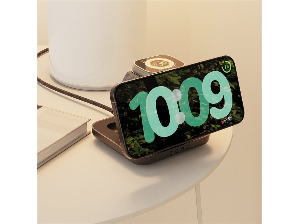 S novou generáciou nabíjačky Zens Nightstand Charger Pro 2, ktorá je už obľúbeným doplnkom mnohých nočných stolíkov, si udržíte pokoj a uprataný priestor. V Zens neustále inovujeme a táto edícia prichádza s moderným dizajnom a univerzálnym opleteným káblom USB-C. Nabíjajte svoj iPhone 12 a novší a Apple Watch súčasne s režimom Apple StandBy, ktorý sa aktivuje, keď je váš iPhone umiestnený vodorovne. Vyrobená z vysoko kvalitnej zliatiny zinku ponúka vyhradené a stabilné miesto pre vaše zariadenie a udržiava všetko dokonale zarovnané počas noci. S nabíjaním až 15 W môžete začať svoj deň plne nabitý.