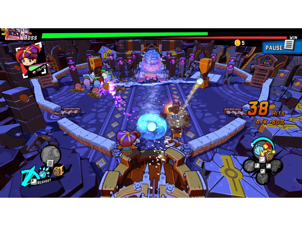 - 11 epic boss fights await, requiring pinballing precision and careful ability management to be taken down!